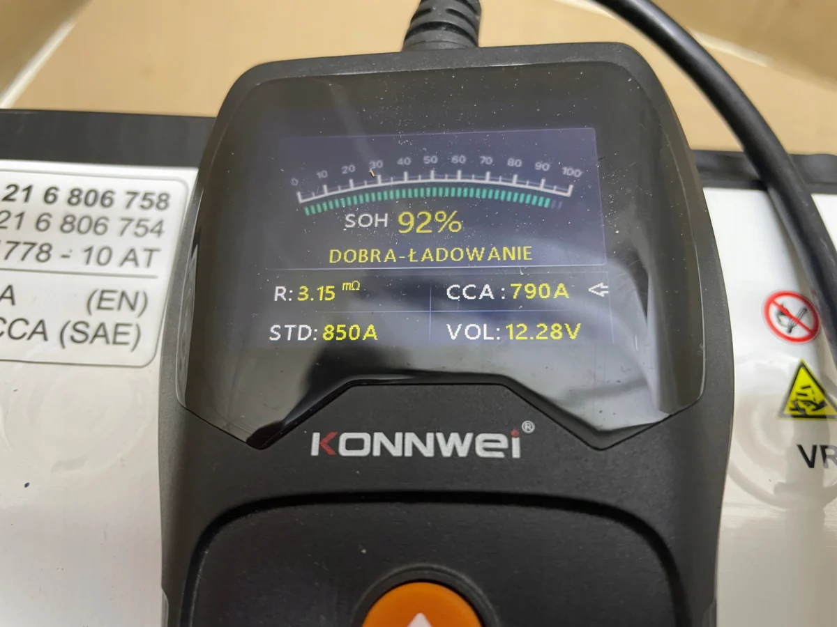 Bateria sprawna potwierdzona pomiarem. ( POMIAR POKAZUJE STAN BATERII I POZIOM NAŁADOWANIA )