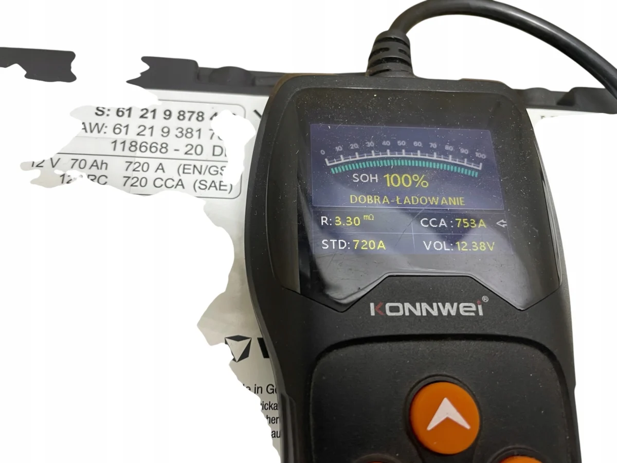 Bateria sprawna potwierdzona pomiarem. ( POMIAR POKAZUJE STAN BATERII I POZIOM NAŁADOWANIA )