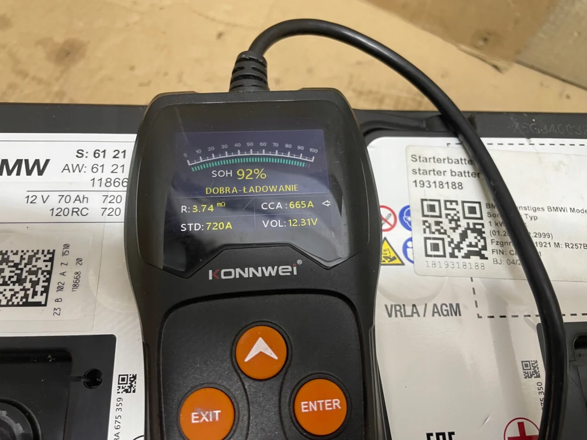 Bateria sprawna potwierdzona pomiarem. ( POMIAR POKAZUJE STAN BATERII I POZIOM NAŁADOWANIA )