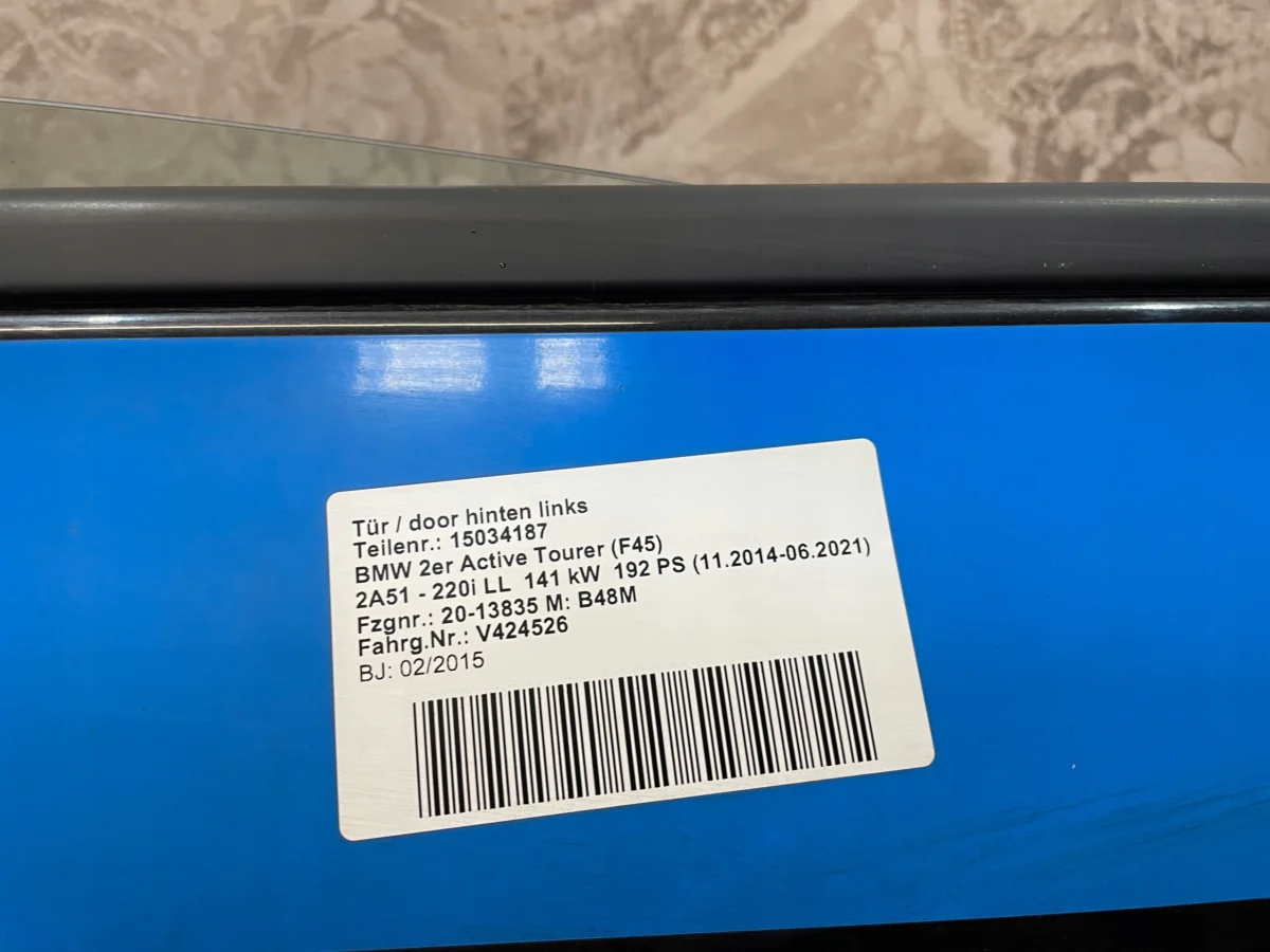 Drzwi tylne lewe kompletne z listwami klamką instalacją szybą do BMW 2 F45 LCI w kolorze 475 Black Saphiere.