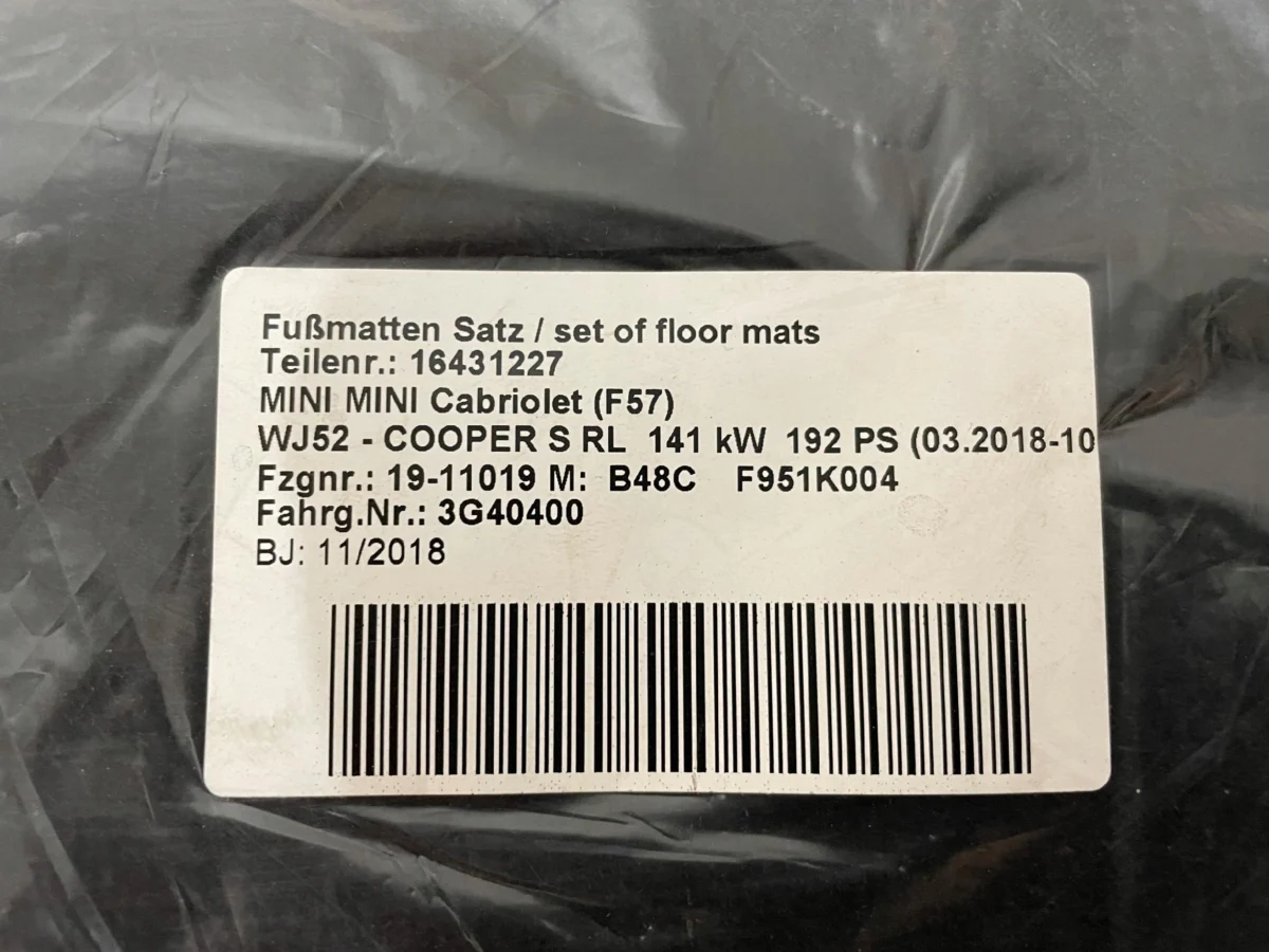 Dywaniki welurowe kpl do MINI F57. WERSJA ANGIELSKA.