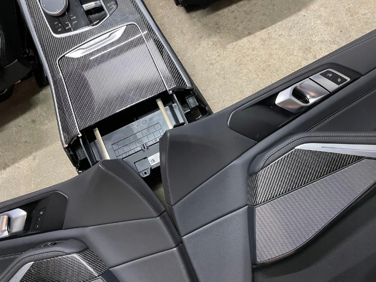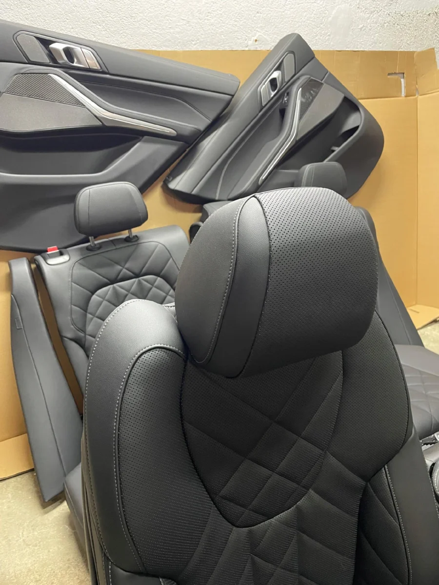 Komplet foteli komfort z pamięcią wentylowane z kanapą tył, grzane przód + tapicerki drzwi skóra + CARBON BMW X5 G05 LIFT 2023R