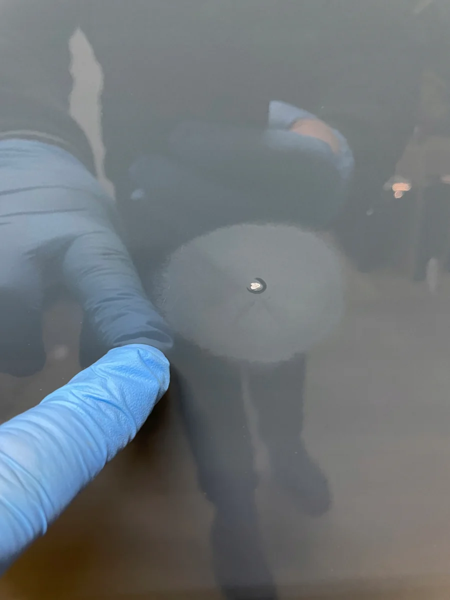 Stan bardzo dobry – widoczne uszkodzenia lakieru – mały punkt zadrapanie i dookoła zadrapania lakier został zmatowiony.